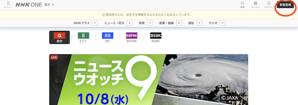 - ホーム画面右上にある「新規登録」をクリックし「旧NHKプラスを利用されていた方はこちら」をクリックする