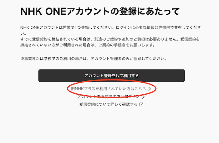 「旧NHKプラスを利用されていた方はこちら」をクリックします。