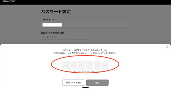 - 旧NHKプラスに登録していたメールアドレスを入力し、認証コードの入力をする